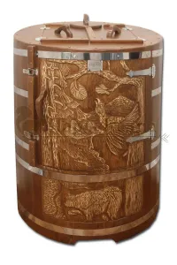 Художественное оформление на лицевой части, сбоку или на всей площади кедровой бочки по вашему эскизу.