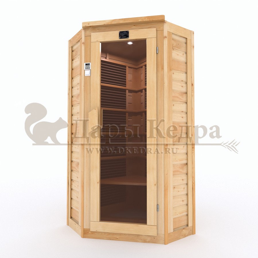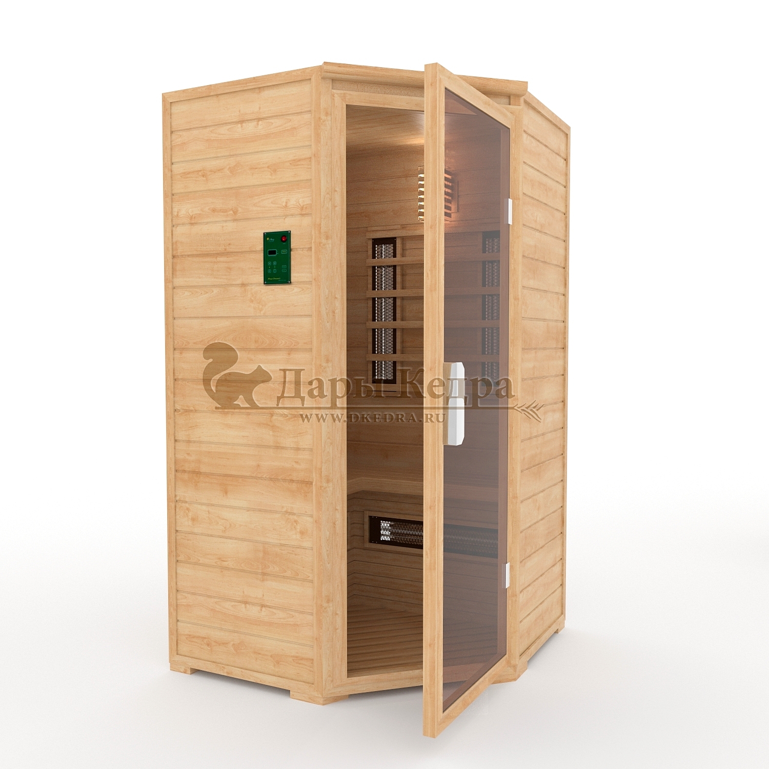 • Одноместная угловая инфракрасная сауна кабина из кедра и липы с керамическими излучателями Это специально оборудованная кабина из липы для прогрева тела человека сухим теплом. Воздух в таких парных не нагревается. Инфракрасные лучи воздействуют на тело, равномерно прогревая мышцы, суставы и органы. Керамические излучатели похожи на лампы, имеют высокую температуру нагрева, поэтому защищены противоожоговыми решетками. Тело человека в таких саунах нагревается интенсивнее. Работает кабина за счет электричества. Установка сауны в угол, позволяет рационально использовать пространство помещения. Подходит как для домашнего использования, так и для коммерции. Обращаем Ваше внимание что в стандартную комплектацию входит трапик для ног, но вы можете его заменить на цельный пол совершенно бесплатно!