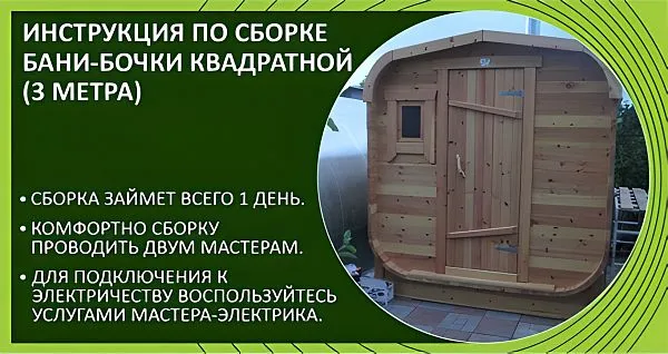 Инструкция по сборке бани-бочки квадратной (3 метра)
