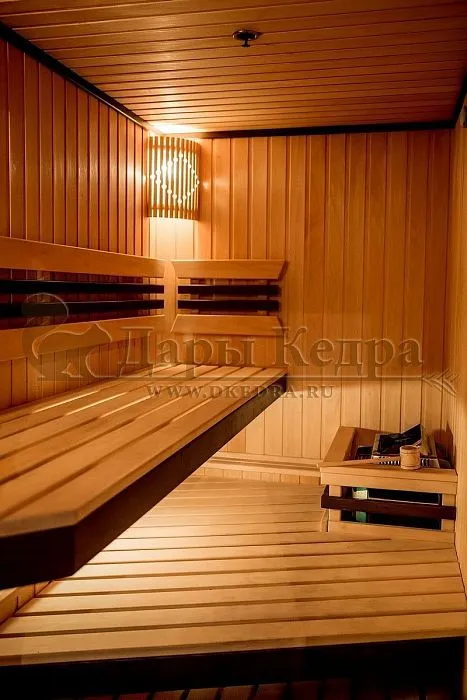 Пятиместная угловая финская сауна кабина из кедра с электрокаменкой